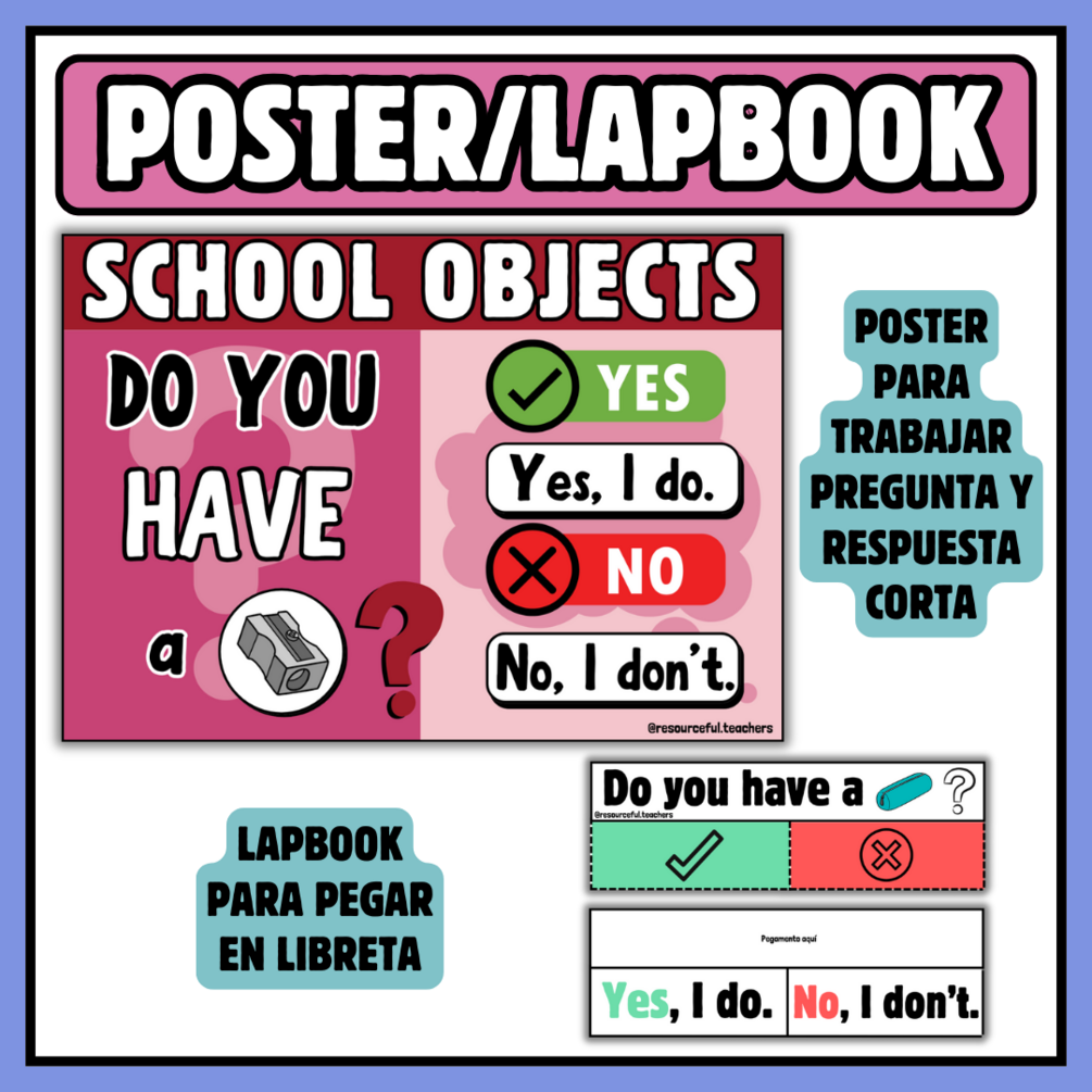 - Póster y lapbook para trabajar estructura de pregunta y respuesta corta.