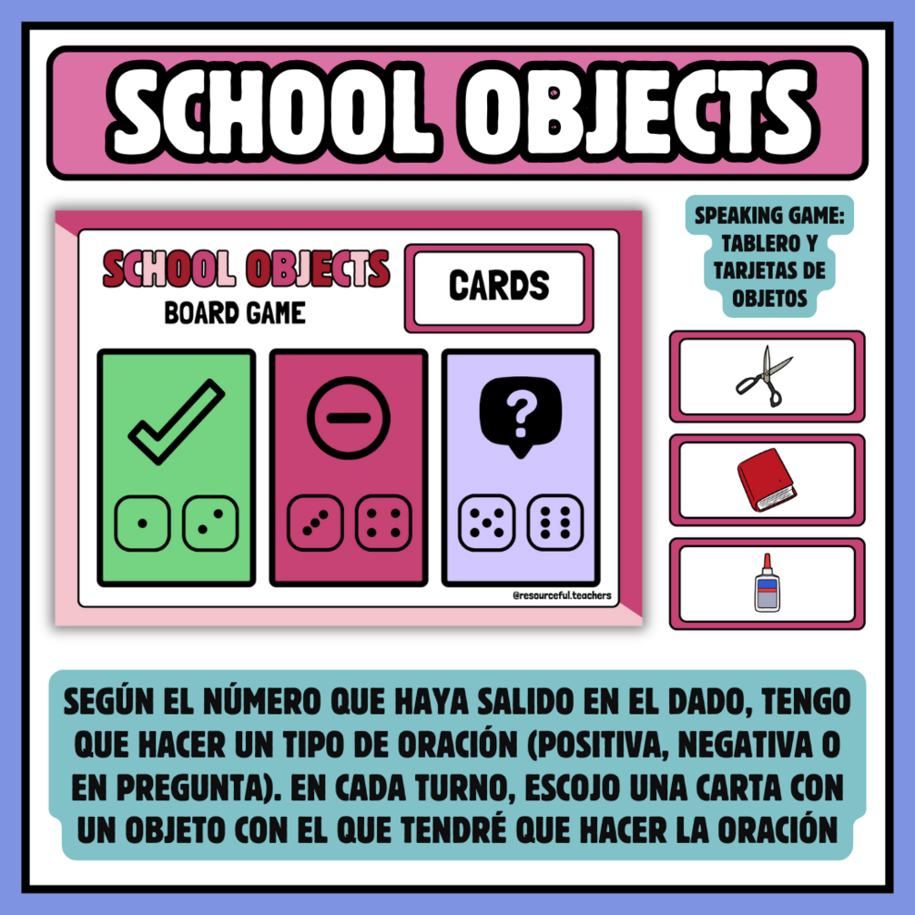¿Quieres trabajar los objetos del colegio de forma divertida y motivadora en tus clases de inglés? Te traemos este mega pack compuesto por 14 recursos que son: